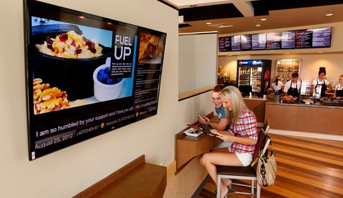 通過數字標牌系統的構建,餐廳就可以把主打菜品通過大屏幕靈活生動的展現出來,試問在“跟著感覺走”的點餐過程中,顧客怎么會對大屏幕顯示中播放的熱騰騰、香噴噴的美味佳肴視而不見呢?而且,店內的數字標牌網絡還可與時下熱門的社交媒體,如微博、微信等,打造出美食討論圈,對顧客發布的相關美食信息、餐廳評論實時追蹤、展示,讓餐廳與“微博控”、“微信控”們保持互動,從而對顧客消費習慣進行輿論引導,提高菜品的推廣效率。