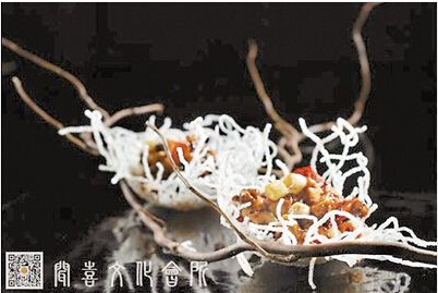 比如,一道名叫玉樹(shù)后庭花的菜,其實(shí)就是宮保豆腐,造型非常優(yōu)美,將宮保豆腐裝在像是樹(shù)枝的丫上,每個(gè)丫上還有一個(gè)雪白的類似鳥(niǎo)巢的盛器,看起來(lái)晶瑩剔透。