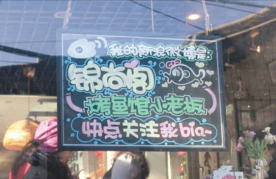 烤魚店開在胡同里,曲徑通幽,但人流量畢竟有限,作為廣告系畢業(yè)生的唐棠如何來推廣宣傳自己呢?唐棠介紹,她開店那會兒,趕上微博熱,于是她立即注冊了一個微博號,用戶名是“錦尚閣烤魚館小老板”,并附上自己的訂餐電話。在微博里,她每天勤勤懇懇地更新,內(nèi)容不全是店里的廣告,而是很多開店的趣事以及自己的生活片段,比如有一條微博是這樣寫的:“員工因家鄉(xiāng)不同,一會兒有離職要去收麥子的,一會兒有離職要去敲松子的,一會兒又有要回家收玉米的……導致我現(xiàn)在對農(nóng)廣天地的收獲時段了如指掌”;“來了一個帥得飛起來的男孩兒,女服務員們都瘋起來、爭著要服務這一桌,我批評了她們:服務行業(yè)怎么能失態(tài)不淡定!怎么能區(qū)別對待!你們知不知道,店是我的,你們是我的,好看的男客人也是我的!這桌我來服務,你們都忙別的去吧……”這些詼諧有趣的情節(jié)以及老板的美照俘獲了眾多同齡人的心,目前她的微博共吸引了5000多名粉絲。唐棠說:“只要勤更新,微博的宣傳效果的確非常顯著而且很持久,開店沒多久,粉絲們就源源不斷地上門來品嘗烤魚,有很多人成了小店的回頭客。到現(xiàn)在,我的新浪微博名字一直寫在小黑板上,掛在店外,來回經(jīng)過的路人有時候也忍不住好奇心關(guān)注我的微博,變成潛在客戶。”