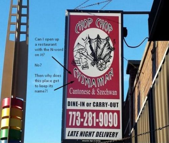 網友吐槽飯店名稱:“我能以N開頭那個詞(指Nigger,黑鬼)做餐館名嗎?”、“不能”、“那這家為什么可以叫中國佬?”