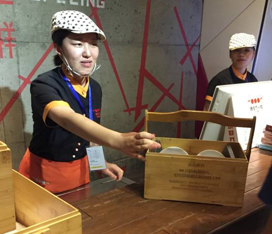 餐具都是從消毒柜里帶著手套拿出來的,并不接觸服務員的手,而且是滾燙的。就是這個溫度和衛(wèi)生,讓顧客 非常樂意‘自己動手拎進去’,而且,漂亮的盒子也讓顧客喜歡。消毒餐具不僅給消費者帶來了心理上的“安全感”還省去了人工擺臺,大大的節(jié)省了成本。