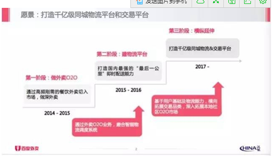 流傳出來(lái)的商業(yè)計(jì)劃書(shū)中,百度外賣(mài)試圖把自己包裝為千億級(jí)別的同城物流平臺(tái)