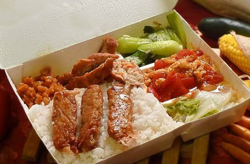 就在觀察期間,廚房?jī)?nèi)的一幕讓記者大吃一驚。透過取菜窗口,記者看到一穿白色上衣的員工將一鍋炒菜倒入一個(gè)方盆,隨后端起一盆米飯,用筷子夾著盆里的肉,自顧自地吃了起來。而當(dāng)前臺(tái)遞來訂單后,他換用大勺從他剛夾肉的方盆中?出兩勺盛入外賣盒,打包裝好后,又換回筷子大快朵頤。記者駐足的近半小時(shí)內(nèi),發(fā)現(xiàn)店內(nèi)另一藍(lán)衣員工的做法如出一轍,員工午餐都是直接用筷子在外賣大鍋中撿拾。