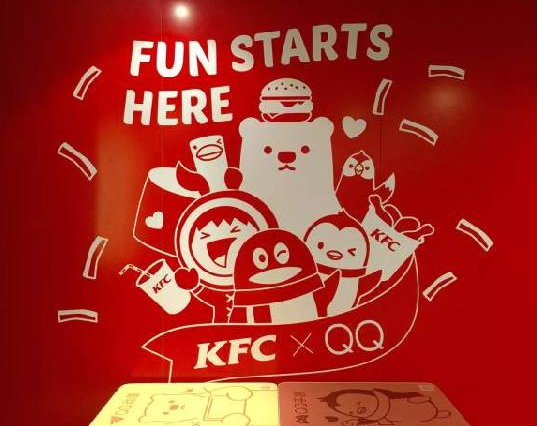 在肯德基QQ主題店內(nèi),無論是露臺、支柱、餐桌、還是墻上的裝飾畫,全部融入QQfamily元素。比如,餐桌上分布有QQ閱讀、QQ手游、QQ音樂、吃喝玩樂等二維碼,消費者掃描就可以參與到各個環(huán)節(jié)中。針對年輕人喜歡自拍的特性,店中設(shè)置了自助照片打印機,消費者可現(xiàn)場免費打印照片。