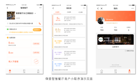 原來公眾號發(fā)展的會(huì)員,一進(jìn)入小程序,就能識別會(huì)員身份和權(quán)益;小程序領(lǐng)取的會(huì)員卡,直接就能添加到微信卡包……近日,移動(dòng)社交商業(yè)生態(tài)領(lǐng)軍者微盟宣布旗下微盟智慧餐廳與微盟智店小程序解決方案無縫對接,推出業(yè)內(nèi)首個(gè)完美打通小程序的餐飲解決方案。