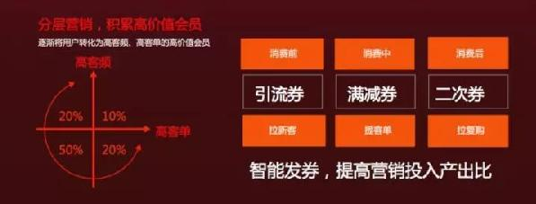 同時(shí),在口碑的新數(shù)據(jù)營銷工具中,方案不是粗暴地發(fā)放代金券,算法會根據(jù)商家所屬類目、所處區(qū)域,從口碑收集的百萬成功營銷案例中,調(diào)取出與該商家情況最相似的一批成功案例分析共性,然后結(jié)合商家的常規(guī)客單、客流等情況,產(chǎn)出滿減比例、滿返力度等具體的營銷公式,進(jìn)行代金券的分類并適時(shí)推送。